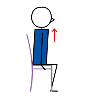 Sit on chair. Grip outside edges of chair with hands, placing them in line with shoulders. Push down with hands. Relax back. Elongate back. Pause. Lower to start. Repeat.