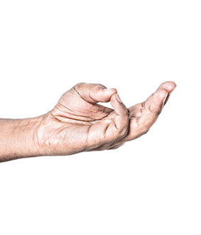 On both hands the index finger touches thumb. Keep other 3 fingers straight.