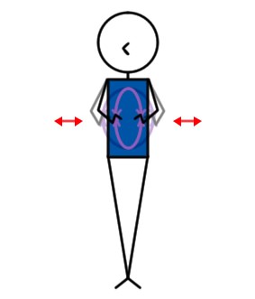 Hold the ring in your hands. Stand with legs together, heels touching, toes pointed out. Lengthen your arms in front and squeeze the ring ten times.